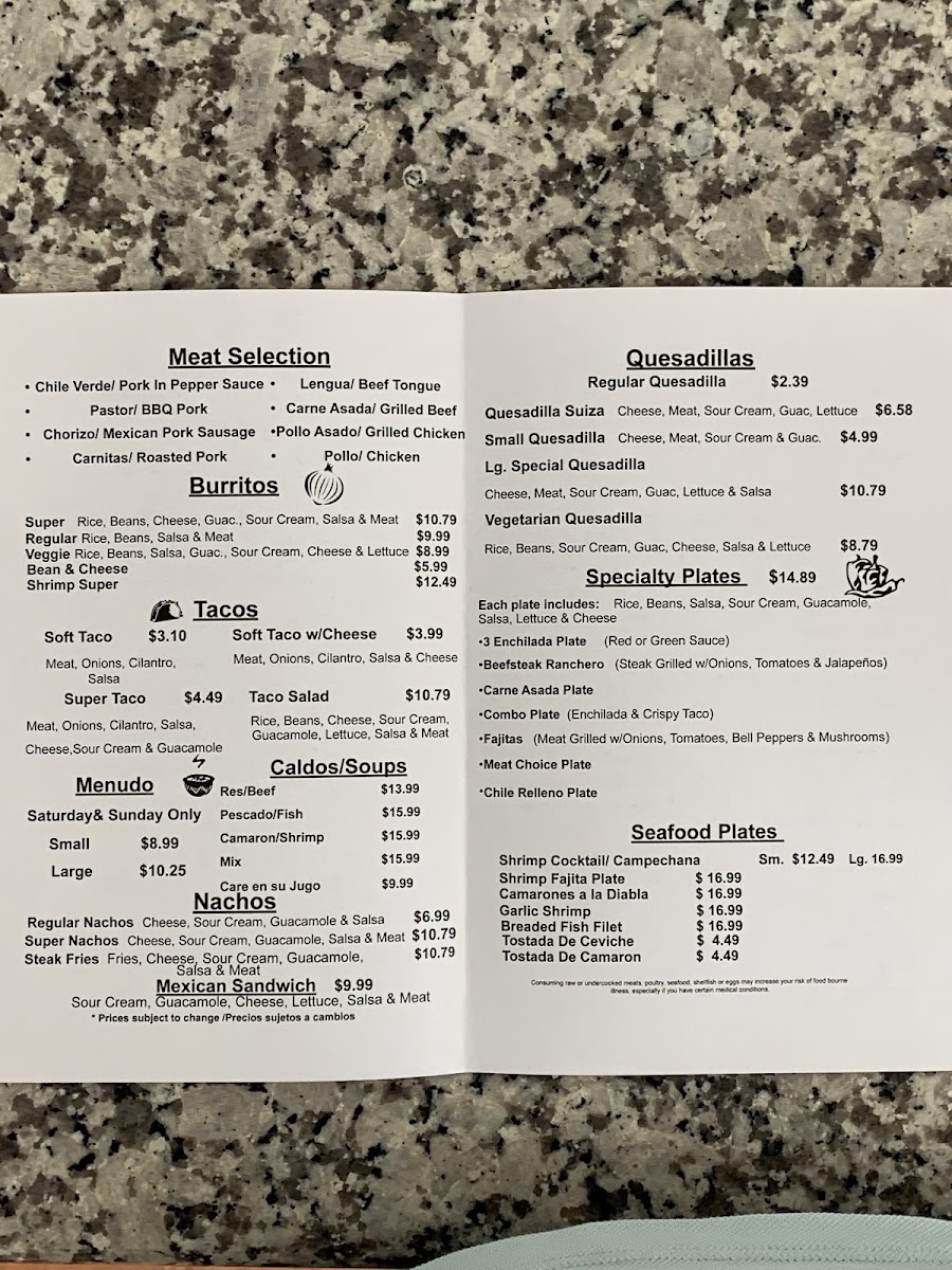 You’ll find flavorful tacos like Carne Asada and Tacos Al Pastor alongside hearty options such as the Wet Burrito or Caldo De Res beef soup. The inclusion of fresh salsas, ceviche, and sides like chips and guacamole add bright and zesty touches that complement the main dishes. Drinks like Coca Cola provide the familiar refreshment that completes the meal.